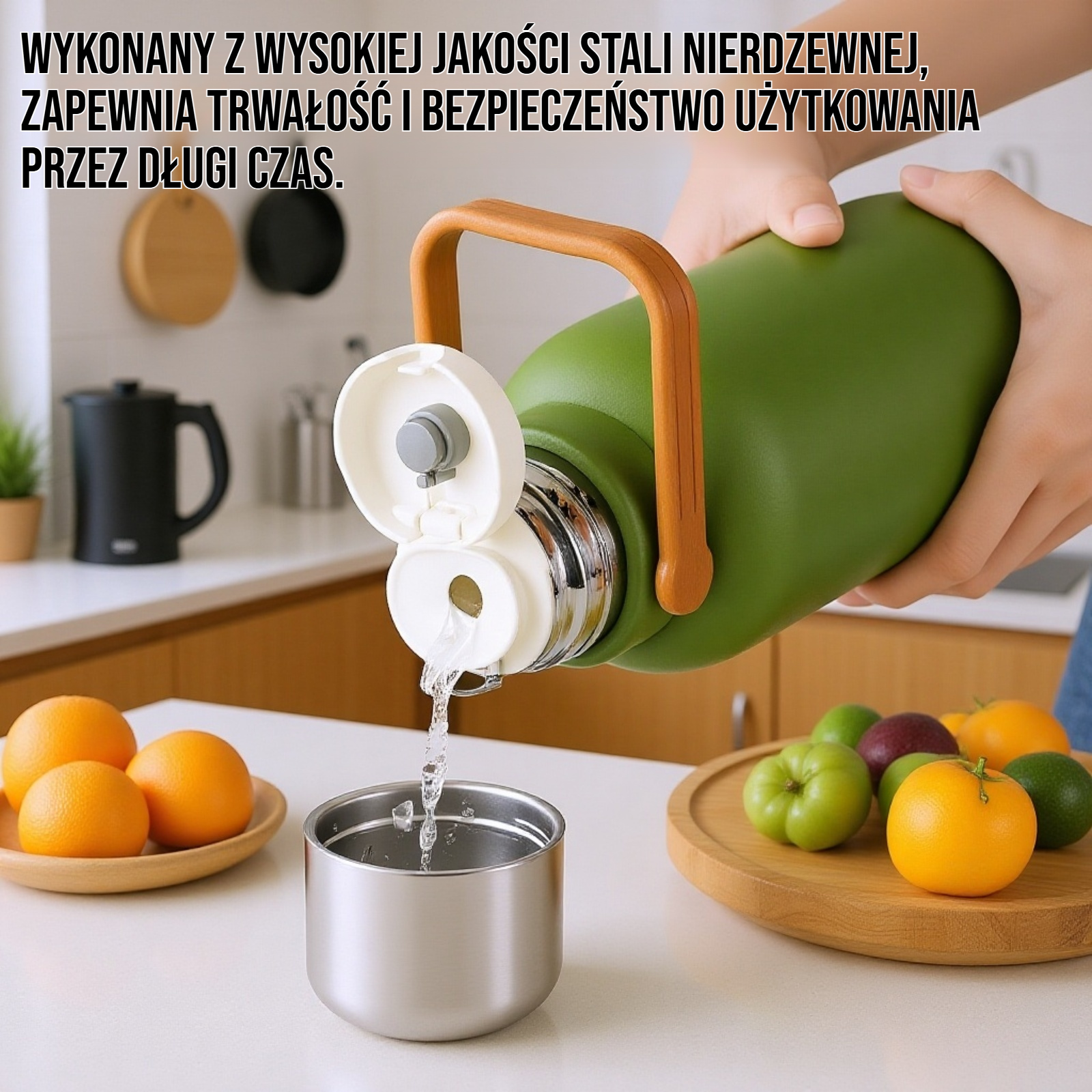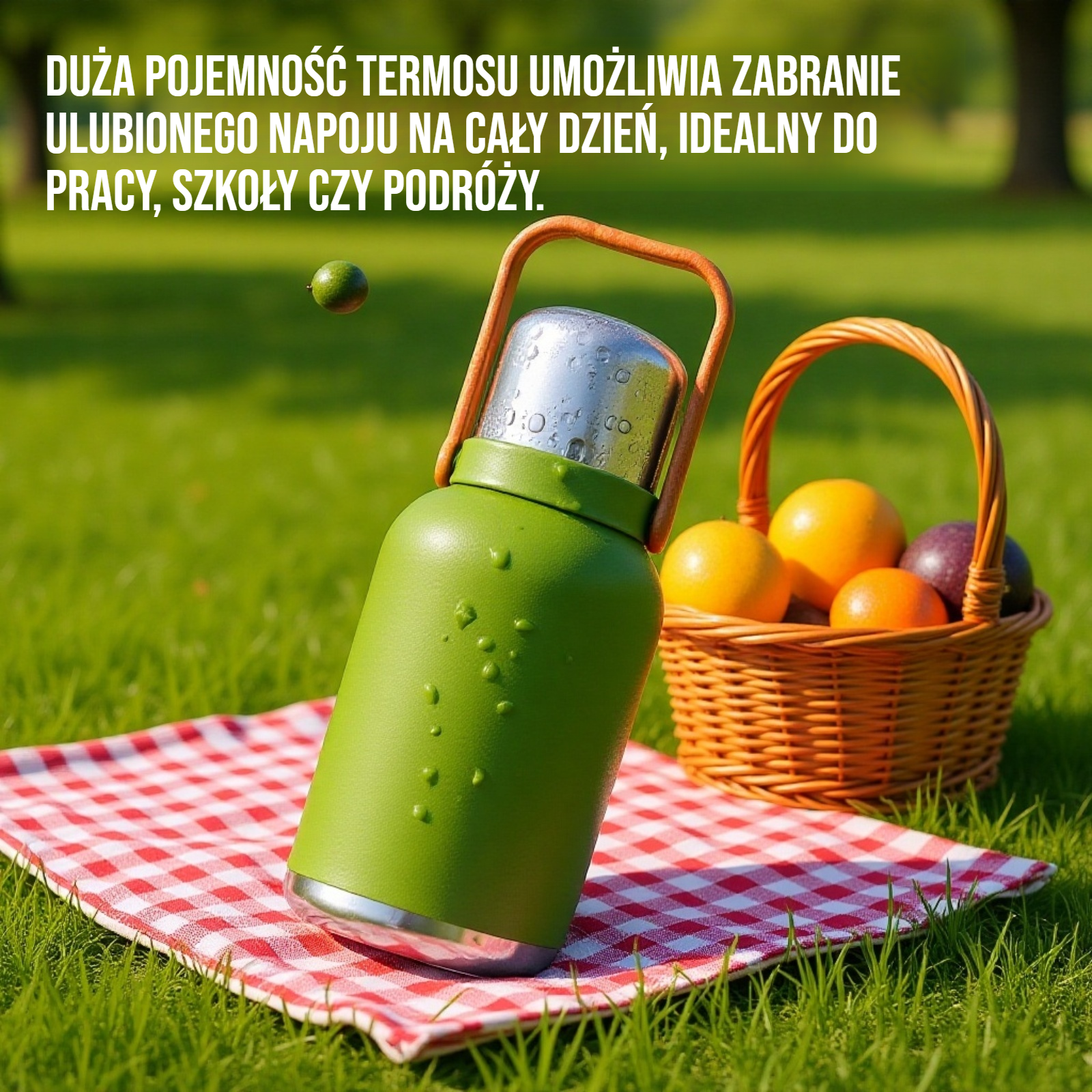 ● Duża pojemność termosu umożliwia zabranie ulubionego napoju na cały dzień, idealny do pracy, szkoły czy podróży.